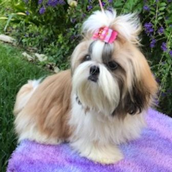 Dreamy Charisma JiDu AKC# TS32681301 Born 10/23/2016 Gold & White (13 pounds) (29 champions in 5 generations) Pedigree Score = 88 From Kim Richmond of Richmond Kennel in