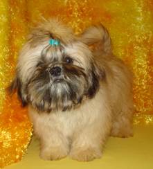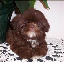 Shih Tzu in “Blue with Tan Markings” or “Liver with Tan Markings”. The "Dobie" marking comes from a